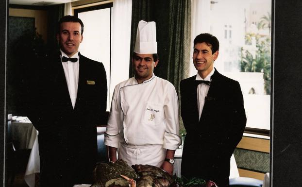 José Miguel Magín nació en la localidad alpujarreña de Mecina Bombarón en 1969. Sus padres tenían allí una casa de comidas, por lo que no ttardó en entrar en contacto con el mundo de la hostelería. «Me gustaba. Además, como mis padres trabajaban todo el día, desde muy niño aprendí a hacerme la comida yo mismo, a ser autosuficiente». Así las cosas, no es de extrañar que bajara a Granada para estudiar en el Hurtado de Mendoza el ciclo completo de cinco años de hostelería. «Ahí conocí a Claudio, que fue profesor en mi último año y nos hicimos íntimos amigos».